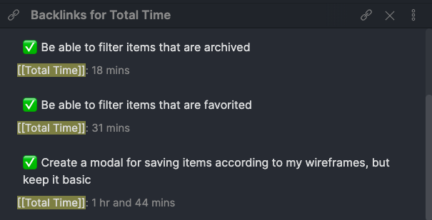 I then enter this information into an Airtable table and add tags that are associated with the type of work that I was doing for each milestone or intention. For this last step, I try to do it once a week on the weekend. By doing this, I can create an average of the logged amount of hours of similar types of work and that will help me create estimates for work that I do in the future. So far, I have been enjoying this approach and wish I had it in 2018. I can’t wait for Obsidian to give us access to the Public Plugin API. I’m planning on creating a plugin that will allow me to automate this process and not have to use Airtable anymore so I can keep everything inside of Obsidian.