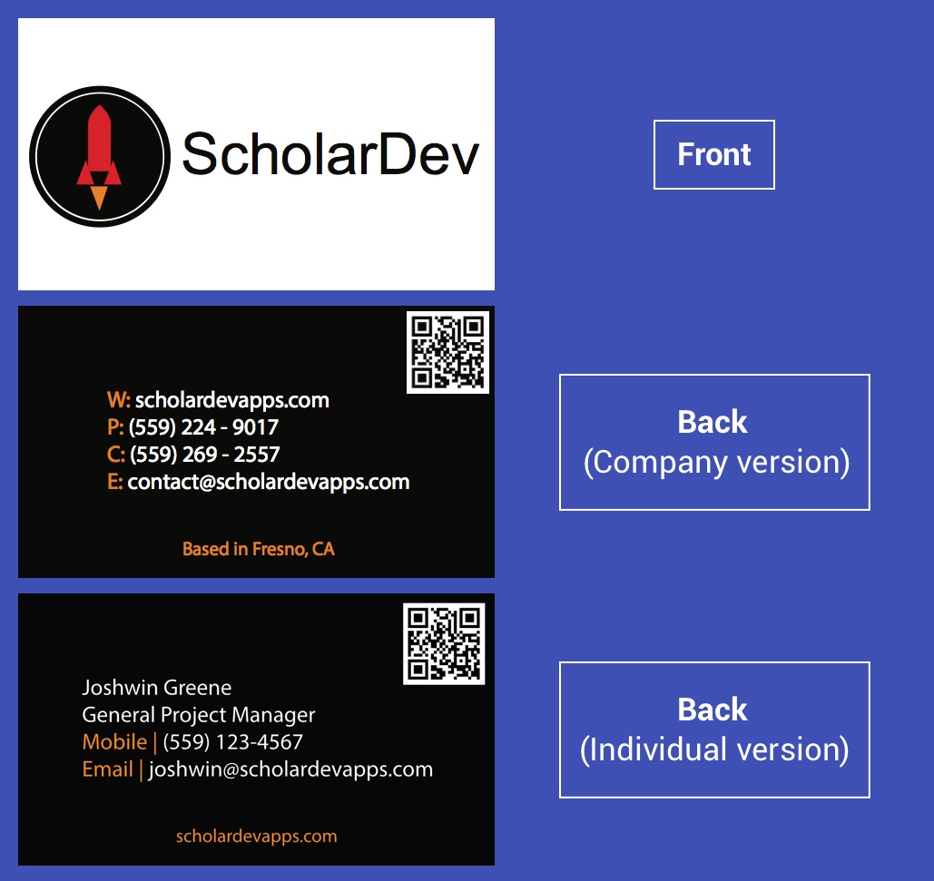 This entry includes the most notable business-specific branding and marketing materials that I created while being a member of ScholarDev Apps (ScholarDev LLC).
