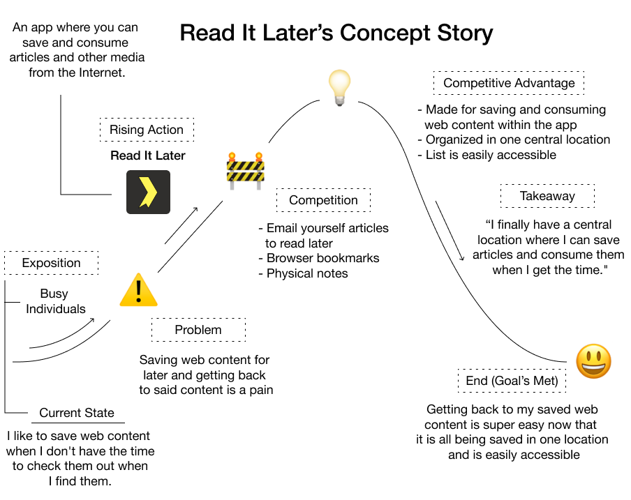For reference, Pocket originally got it start as a web app / browser extension for Mozilla Firefox and then it added apps for iOS and Android. It was originally called Read It Later. Based on this fact, here’s Read It Later’s concept story: