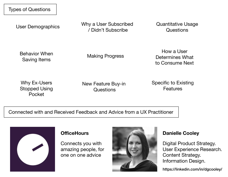 Now, I did want to get some feedback for some of the buy-in questions that I put together and how I was executing my case study in general. I decided to use OfficeHours, which allowed me to connect with and get some feedback and advice from a UX practitioner.