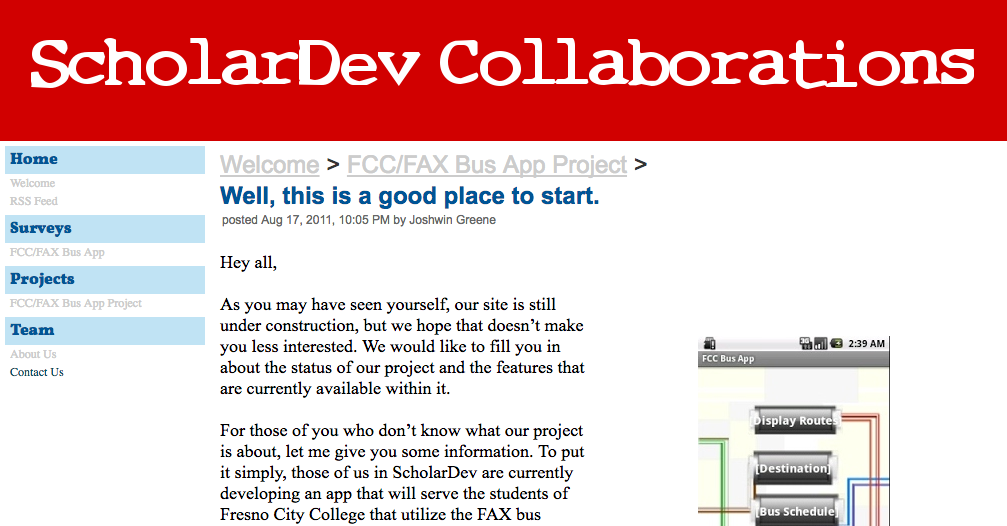 This project began after co-founding ScholarDev, which was a student development team that was put together in order to continue to work on the transit application that was initially created during a summer school community college project. You can learn more about that project here: Fresno Transit Free