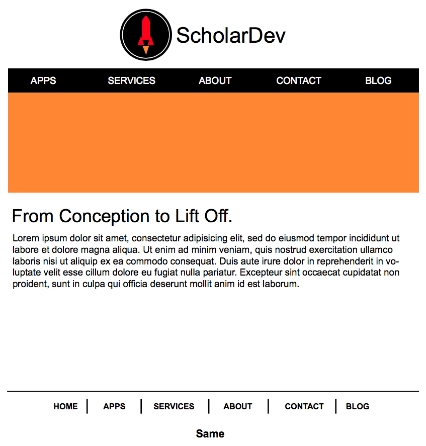 Note: For reference, the orange rectangle on the first page is a placholder for the carousel. Also, the use of “Same” at the bottom of both pages is a placeholder for ScholarDev LLC’s social media links and the obligatory website copyright stamp.