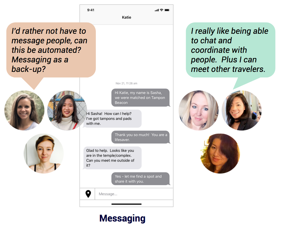 - As a user who needs a period product in a foreign country, I want a non-stressful way to communicate with those who don’t speak my language so that my apprehension of messaging people doesn’t get in the way.