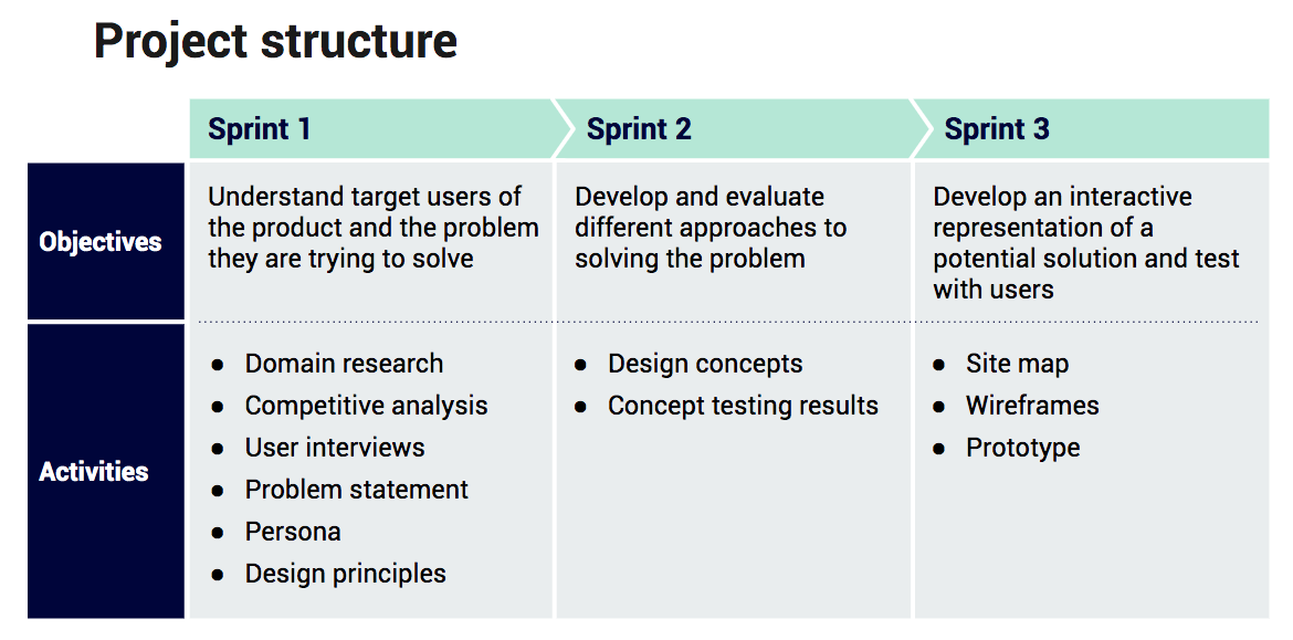 During the project’s kickoff, we outlined our user-centered design process and planned project structure to the client.